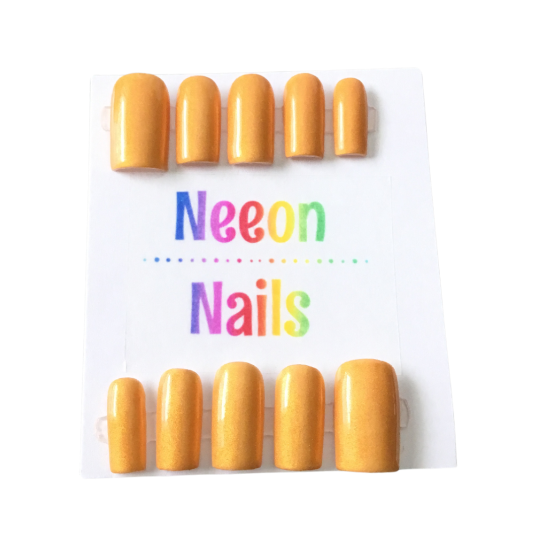 Make a statement and express your personality with a bold, vibrant look using our neon gold gel nails. The glossy top coat promises to turn heads and elevate your style to new heights, adding a fun pop of color. Stand out from the crowd with confidence and flair.
