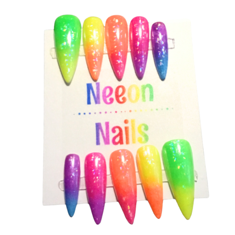 Elevate your style with a bold, vibrant, and eye-catching look using our neon iridescent rainbow gel nails. The glossy finish ensures all eyes will be on you, as you make a statement and showcase your unique personality with confidence and flair!