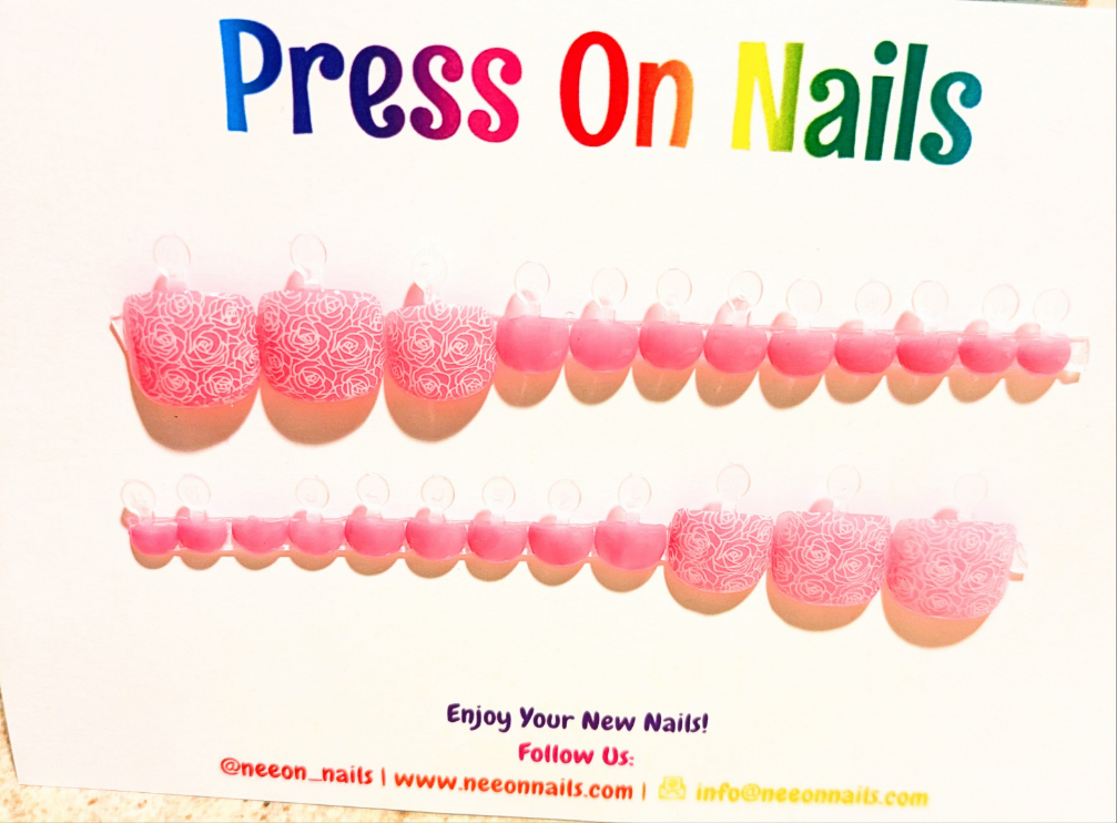 Introducing our Rose Bouquet Glow Gel Toe Nails - the perfect combination of style and fun! Our glossy pink gel nails will make your toes stand out, and the rose bouquet design adds a touch of elegance. Plus, these nails glow in the dark for an added playful touch. Get your feet glowing today!